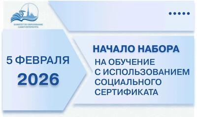 5 февраля 2026 года – стартует набор детей от 5 до 17 лет в кружки и секции дополнительного образования на программы по 36 часов. Для оплаты кружков можно использовать СОЦИАЛЬНЫЙ СЕРТИФИКАТ, который действует для детей, которые зарегистрированы (постоянно или временно) в Санкт-Петербурге. |